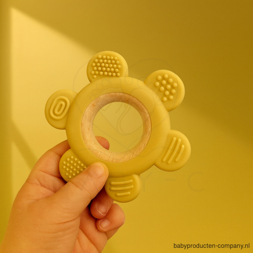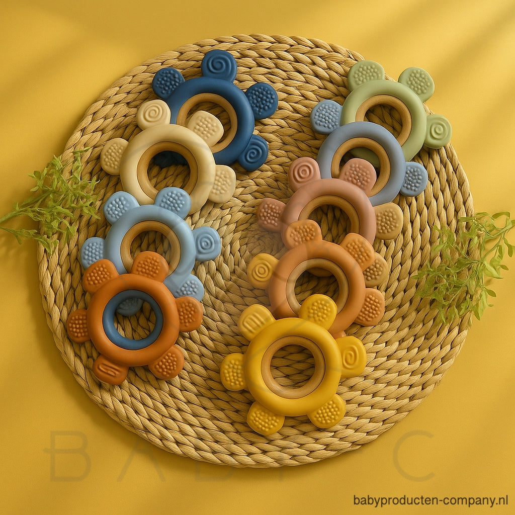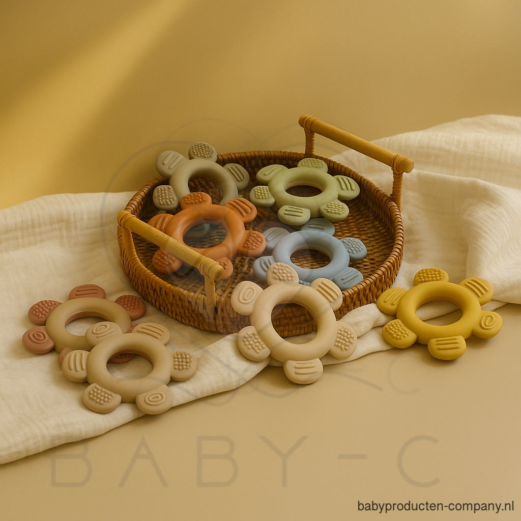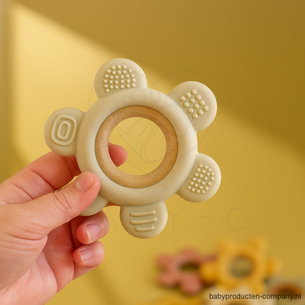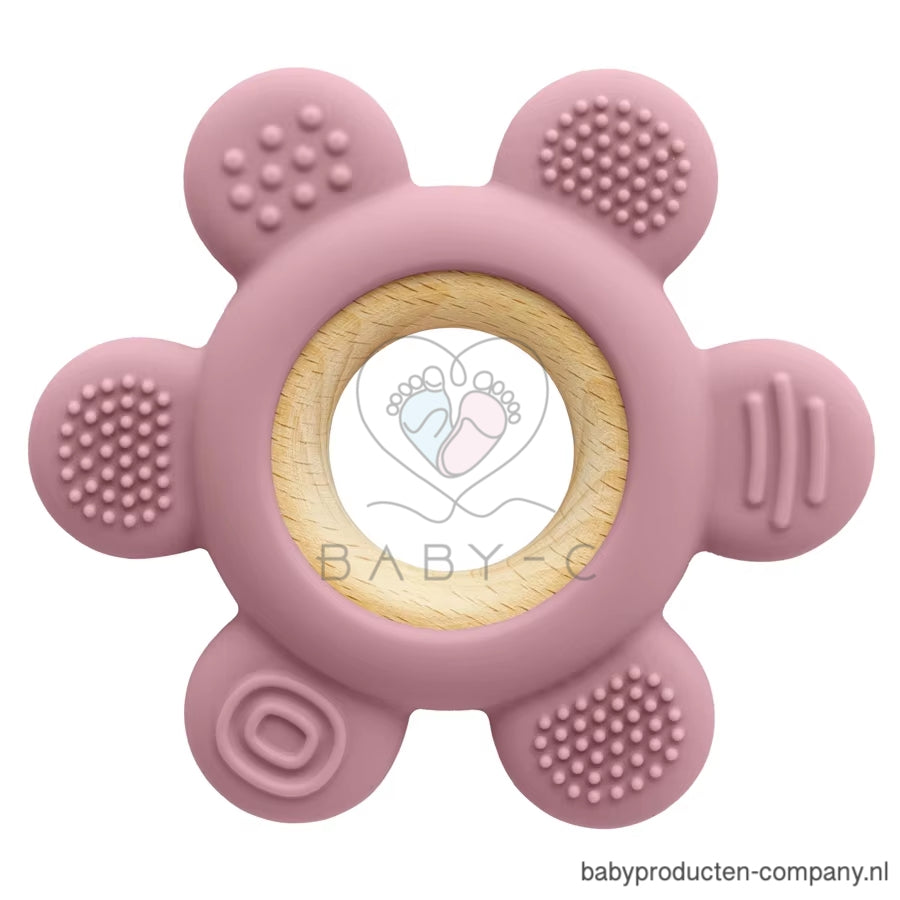 Deze schattige bijtring in bloemvorm is speciaal ontworpen om verlichting te bieden bij doorkomende tandjes. Het zachte, veilige materiaal masseert het tandvlees van je baby en vermindert pijn en ongemak. Dankzij de verschillende structuren op de bijtring kan je kindje spelenderwijs kauwen, ontdekken en troost vinden.