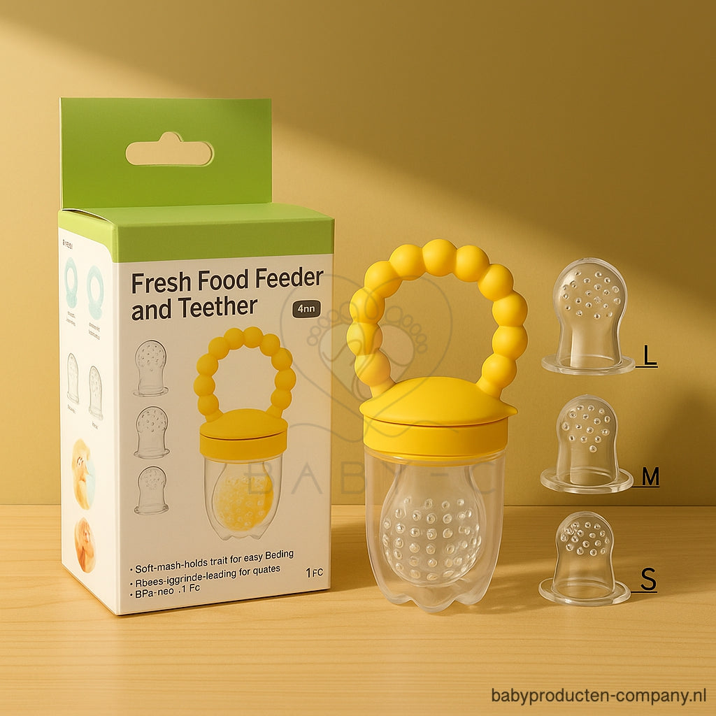 Deze fruit- of voedselspeen is ideaal om je baby op een veilige en speelse manier kennis te laten maken met nieuwe smaken. Vul de bijtring met stukjes zacht fruit, groente of ander voedsel en je kindje kan zelfstandig sabbelen en kauwen zonder risico op verslikken. Zo stimuleer je de overgang naar vaste voeding én verzacht je tegelijkertijd het ongemak van doorkomende tandjes.