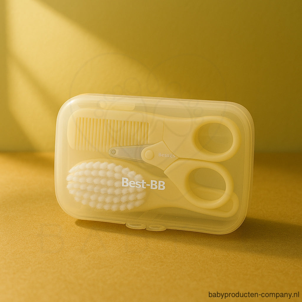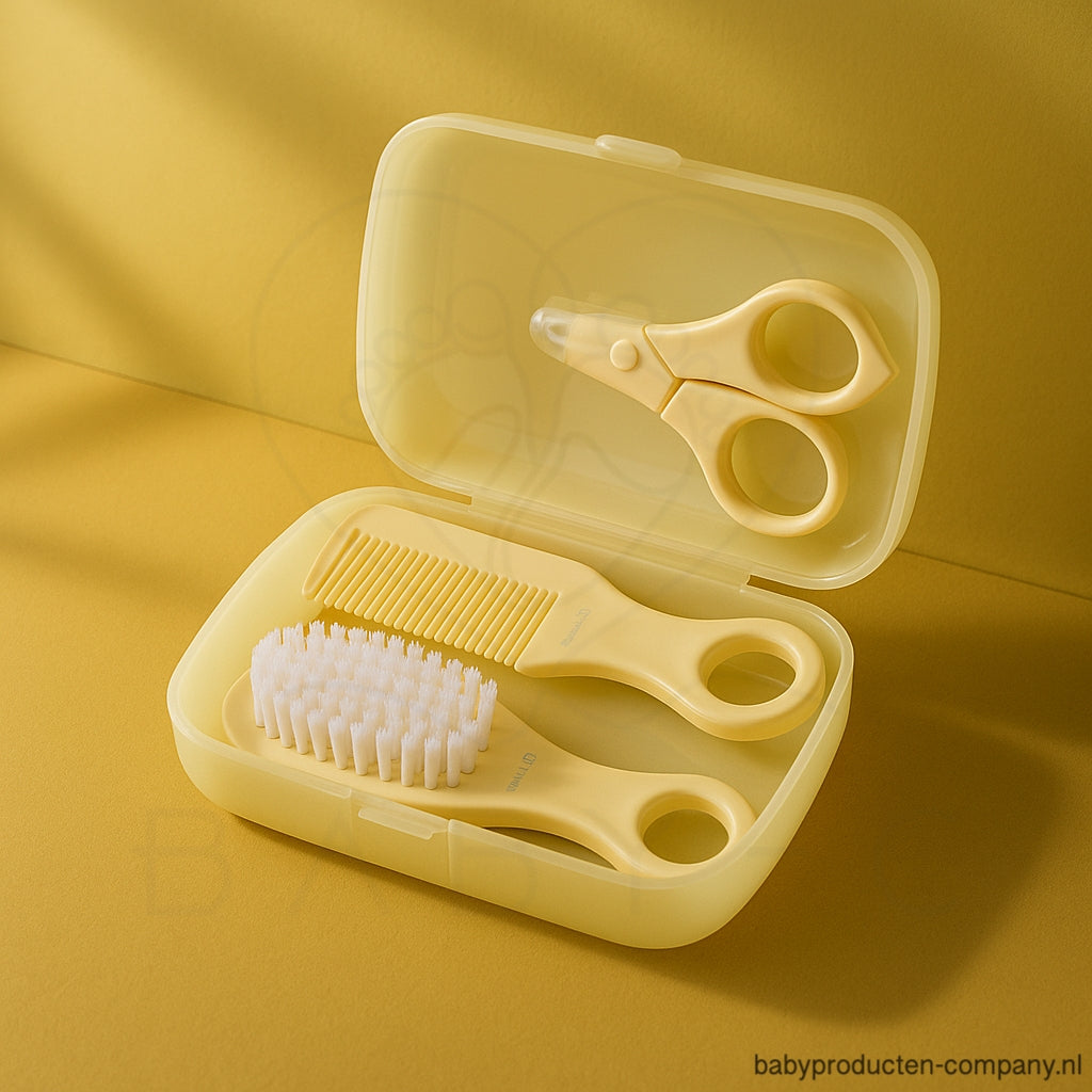 De set bevat een zachte borstel, een kam, een veilig babynagelschaar en een neustangetje met beschermhoesje. Speciaal ontworpen voor het gevoelige babyhuidje en de tere nageltjes, zodat je je kindje veilig en comfortabel kunt verzorgen.